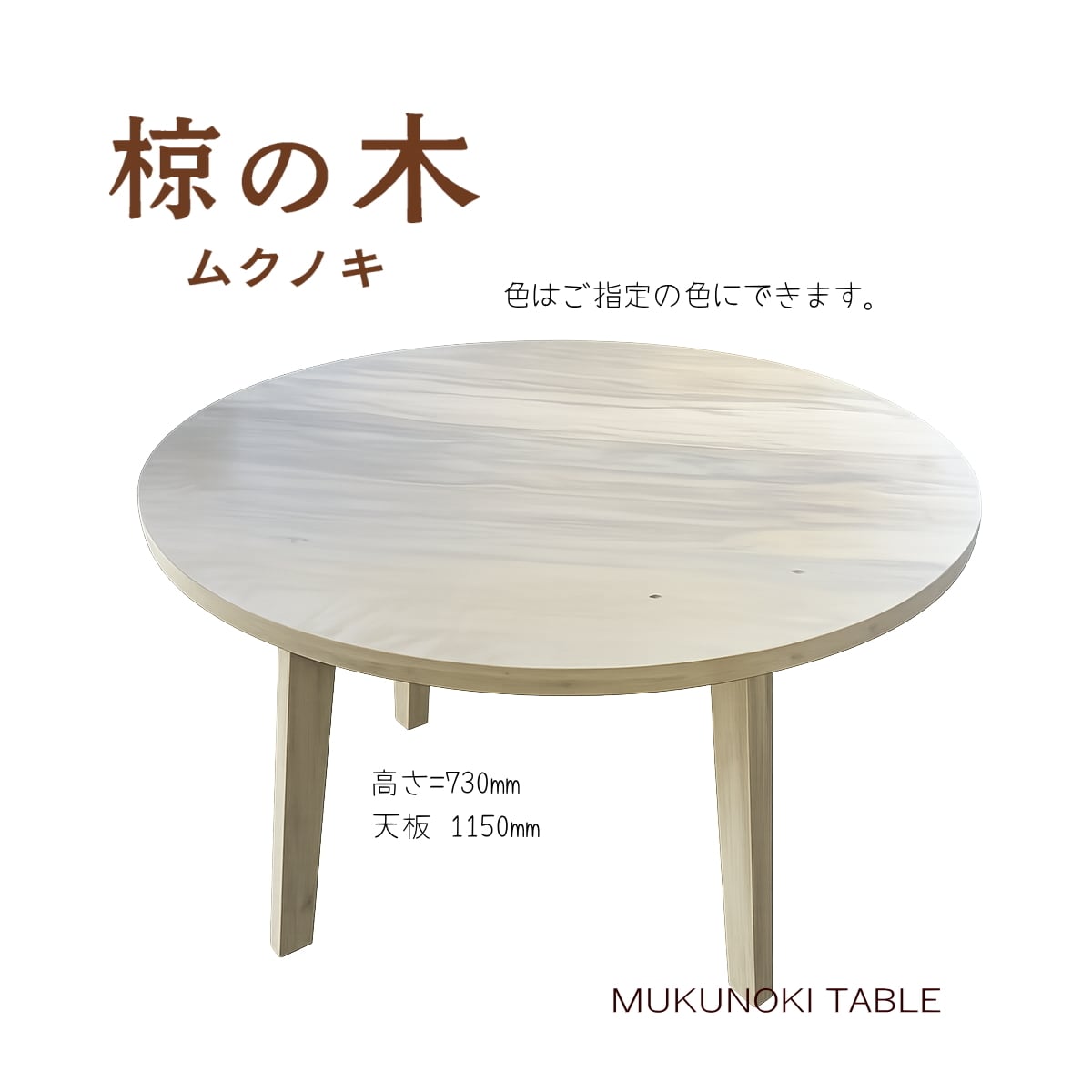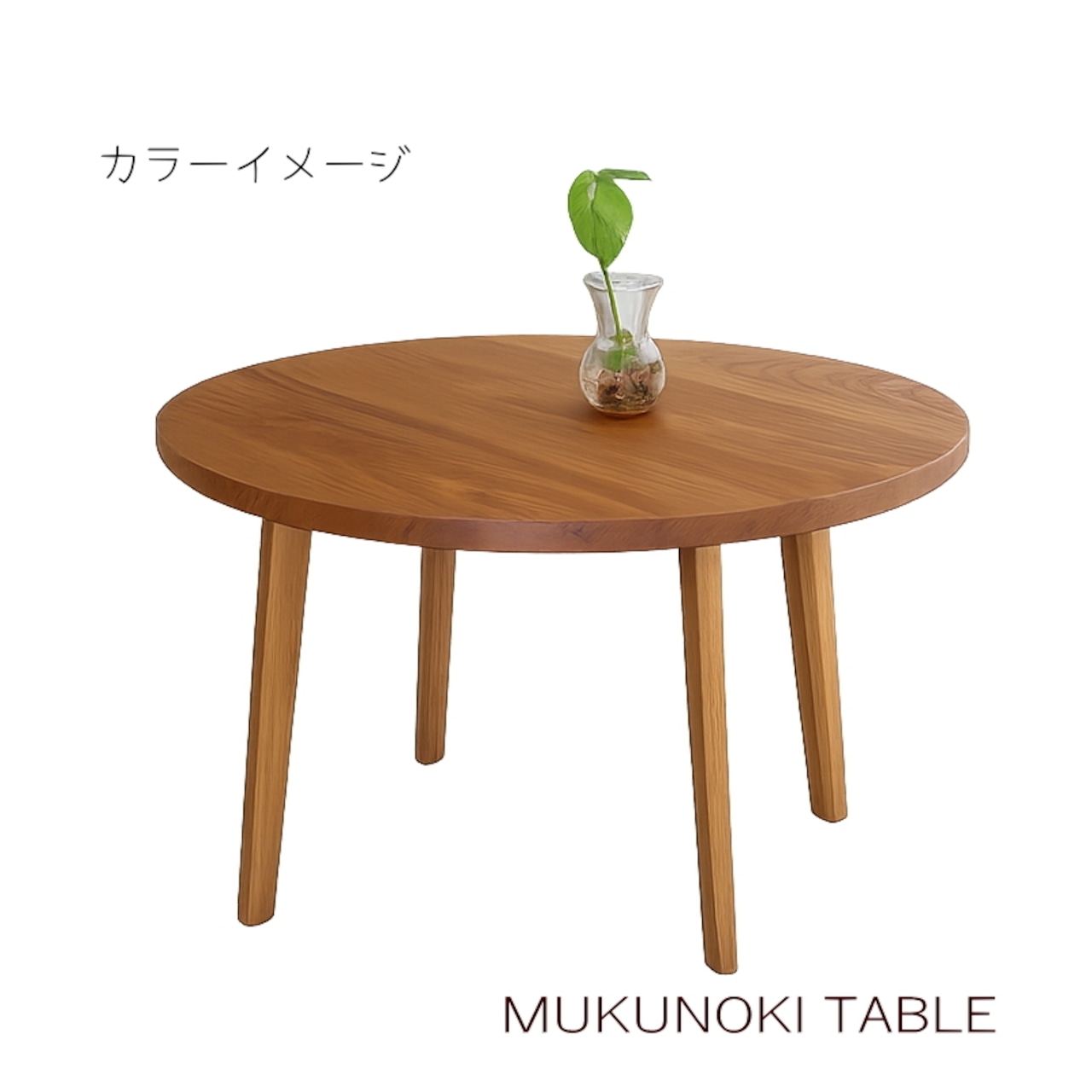 椋木(むく)の木の丸テーブル R1150|無垢材ダイニングテーブル|高さオーダー可|木のまま使う